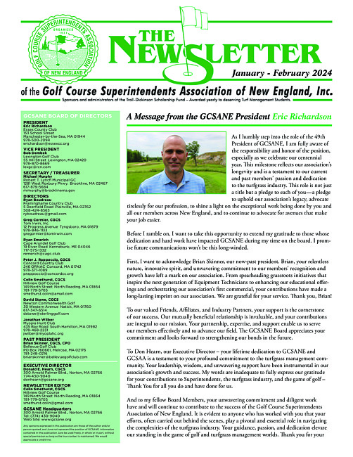 The newsletter of the Golf Course Superintendents Association of New England, Inc. (2024 January/February)
