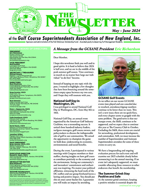 The newsletter of the Golf Course Superintendents Association of New England, Inc. (2024 May/June)