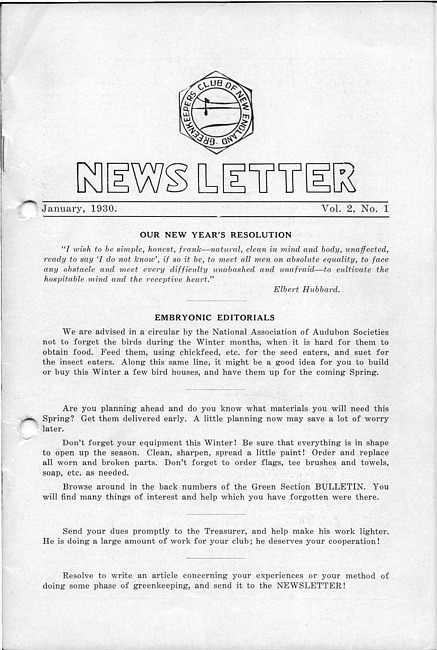 Newsletter. Vol. 2 no. 1 (1930 January)