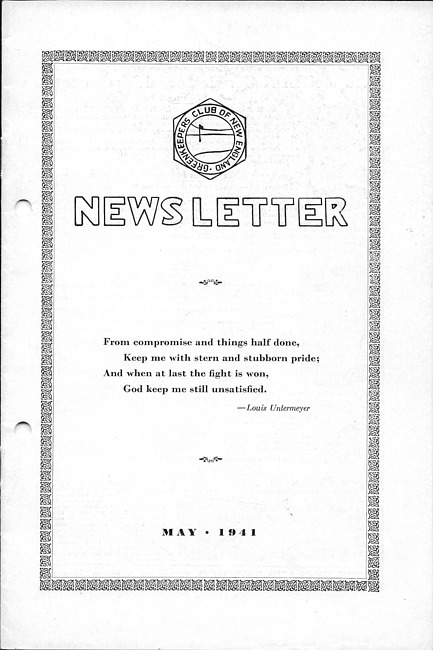 Newsletter. Vol. 13 no. 4 (1941 May 1)