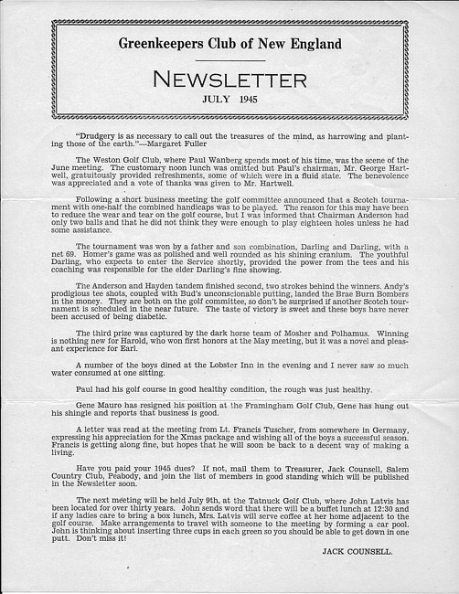 For conditions of use, see: Use of The Newsletter of the Golf Course Superintendents Association of New England, Inc. content.
