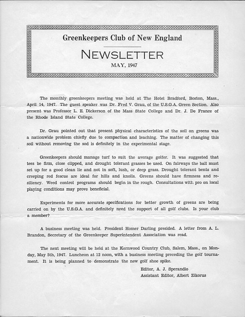 For conditions of use, see: Use of The Newsletter of the Golf Course Superintendents Association of New England, Inc. content.