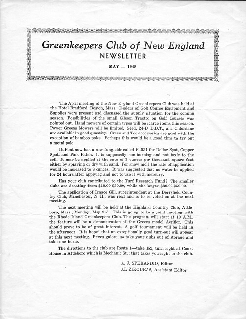 For conditions of use, see: Use of The Newsletter of the Golf Course Superintendents Association of New England, Inc. content.