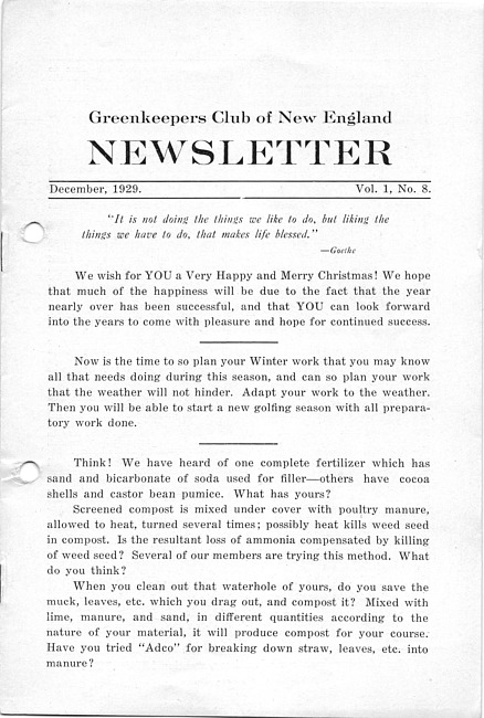 Newsletter. Vol. 1 no. 8 (1929 December)