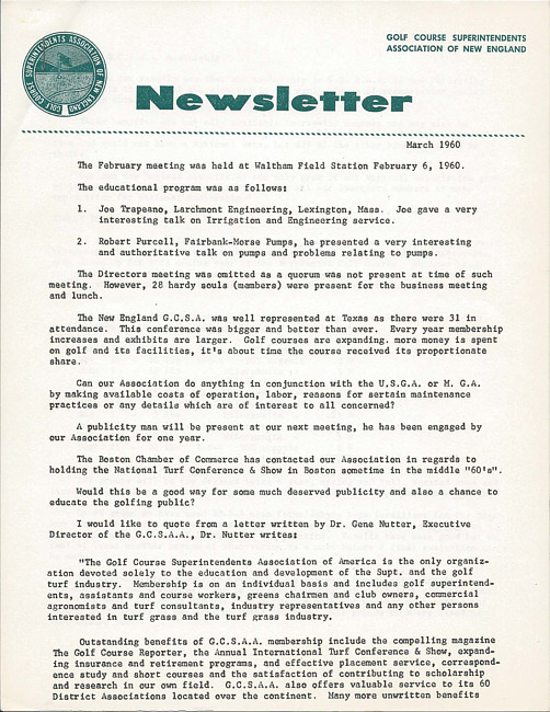 For conditions of use, see: Use of The Newsletter of the Golf Course Superintendents Association of New England, Inc. content.