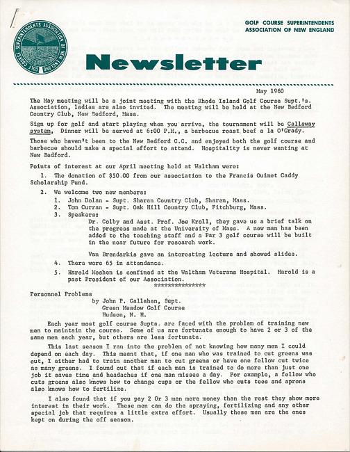For conditions of use, see: Use of The Newsletter of the Golf Course Superintendents Association of New England, Inc. content.