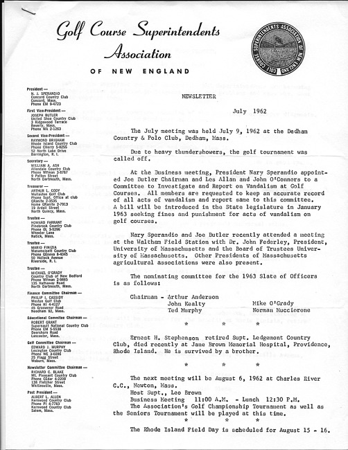 For conditions of use, see: Use of The Newsletter of the Golf Course Superintendents Association of New England, Inc. content.