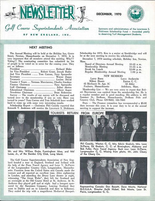Newsletter. (1970 December)