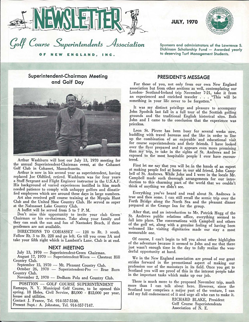 For conditions of use, see: Use of The Newsletter of the Golf Course Superintendents Association of New England, Inc. content.