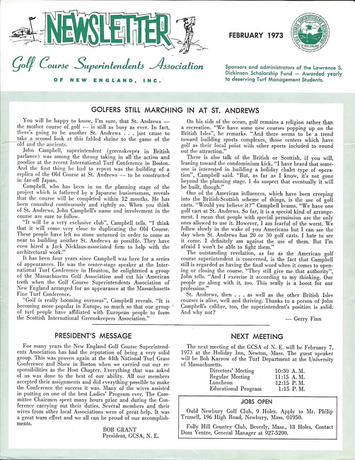 For conditions of use, see: Use of The Newsletter of the Golf Course Superintendents Association of New England, Inc. content.