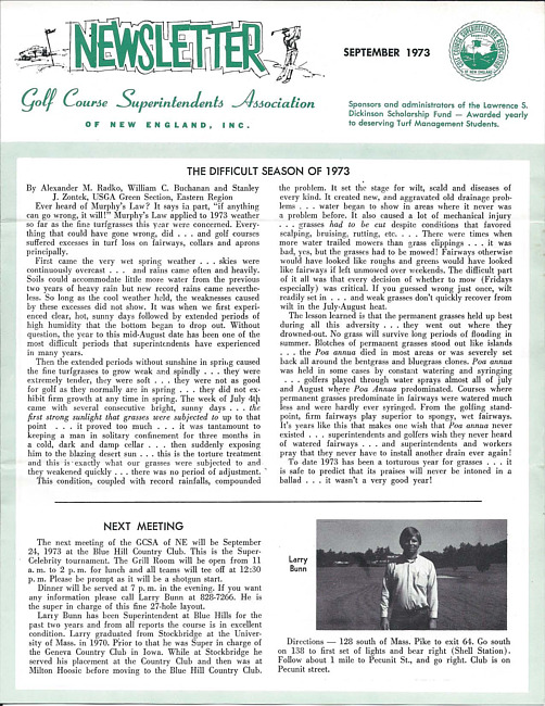 For conditions of use, see: Use of The Newsletter of the Golf Course Superintendents Association of New England, Inc. content.