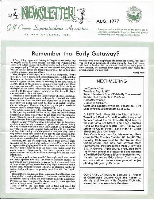 For conditions of use, see: Use of The Newsletter of the Golf Course Superintendents Association of New England, Inc. content.