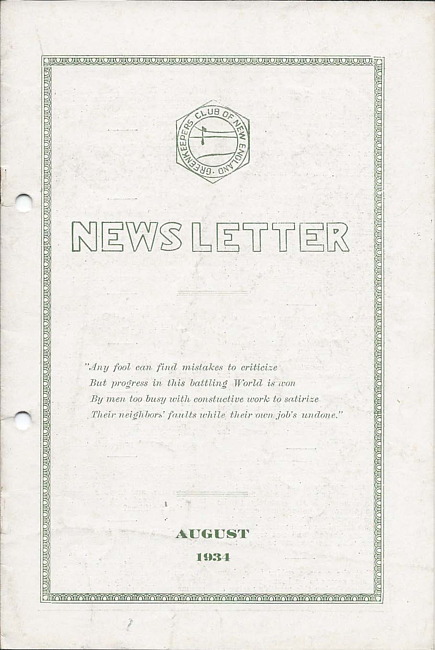 Newsletter. Vol. 6 no. 8 (1934 August)