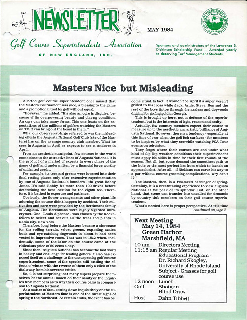 For conditions of use, see: Use of The Newsletter of the Golf Course Superintendents Association of New England, Inc. content.