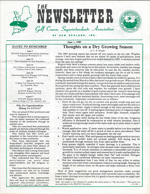 For conditions of use, see: Use of The Newsletter of the Golf Course Superintendents Association of New England, Inc. content.