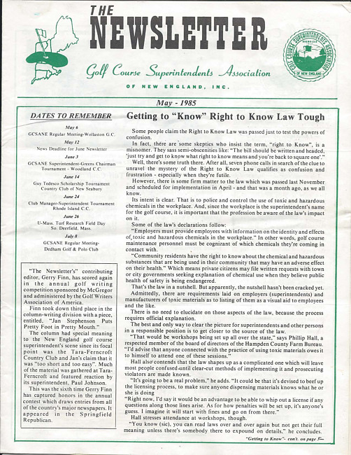 For conditions of use, see: Use of The Newsletter of the Golf Course Superintendents Association of New England, Inc. content.