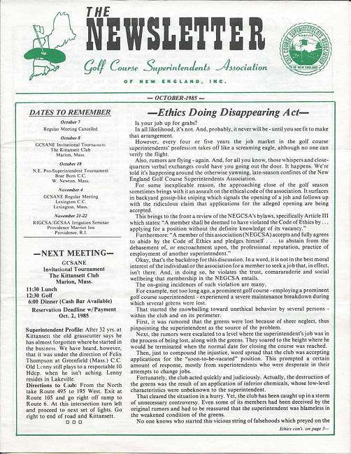 For conditions of use, see: Use of The Newsletter of the Golf Course Superintendents Association of New England, Inc. content.