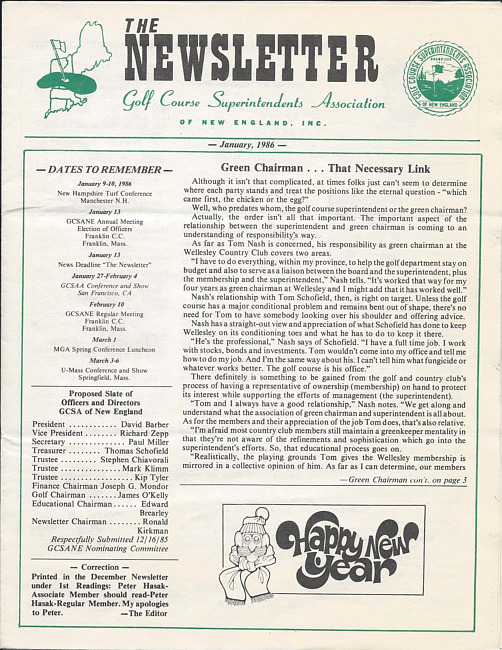 For conditions of use, see: Use of The Newsletter of the Golf Course Superintendents Association of New England, Inc. content.