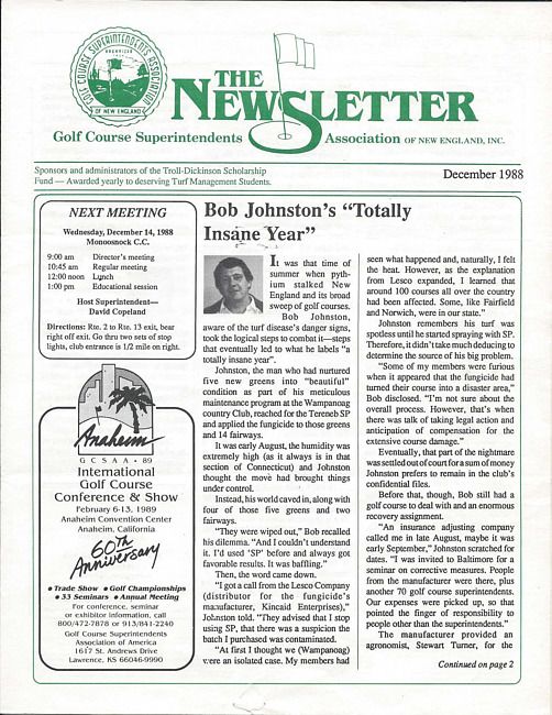For conditions of use, see: Use of The Newsletter of the Golf Course Superintendents Association of New England, Inc. content.