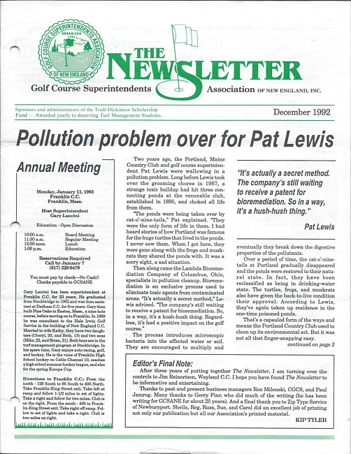 For conditions of use, see: Use of The Newsletter of the Golf Course Superintendents Association of New England, Inc. content.