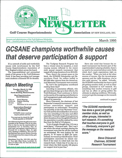 For conditions of use, see: Use of The Newsletter of the Golf Course Superintendents Association of New England, Inc. content.