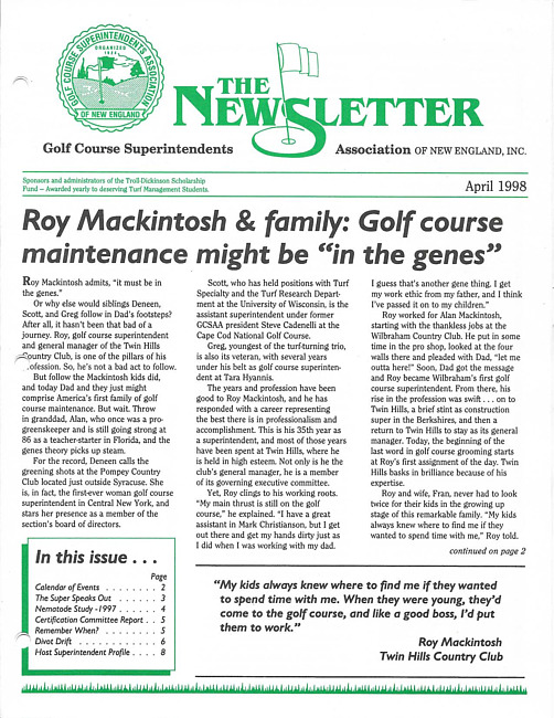 For conditions of use, see: Use of The Newsletter of the Golf Course Superintendents Association of New England, Inc. content.