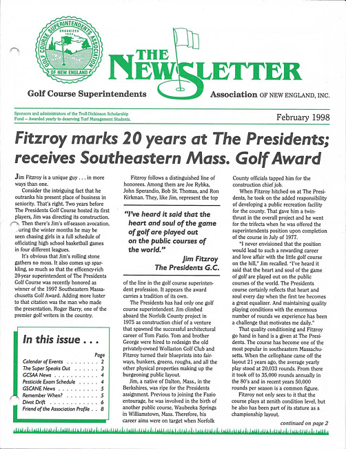 For conditions of use, see: Use of The Newsletter of the Golf Course Superintendents Association of New England, Inc. content.