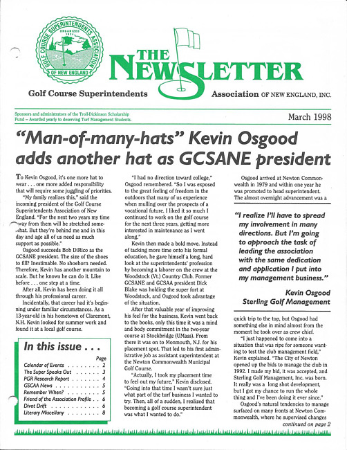 For conditions of use, see: Use of The Newsletter of the Golf Course Superintendents Association of New England, Inc. content.