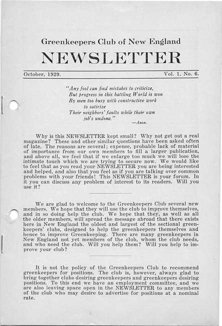 Newsletter. Vol. 1 no. 6 (1929 October)