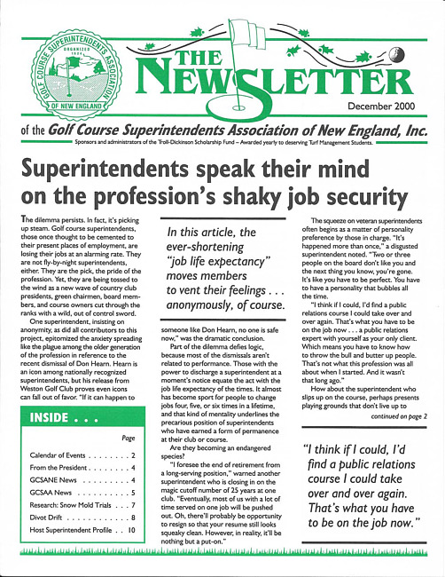 The newsletter of the Golf Course Superintendents Association of New England, Inc. (2000 December)