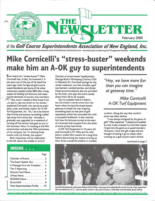 The newsletter of the Golf Course Superintendents Association of New England, Inc. (2000 February)