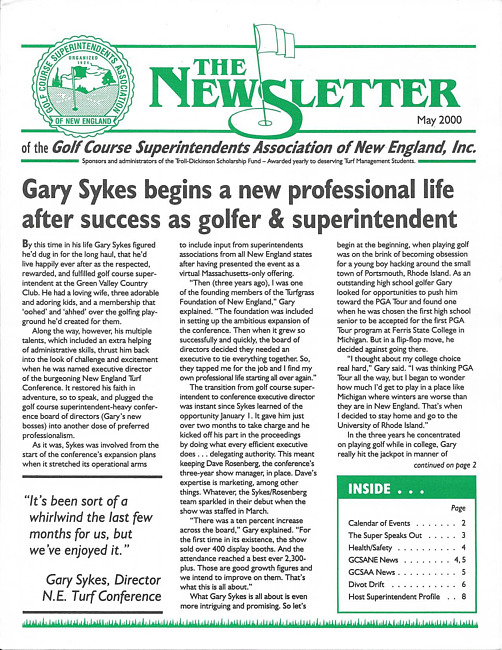 The newsletter of the Golf Course Superintendents Association of New England, Inc. (2000 May)