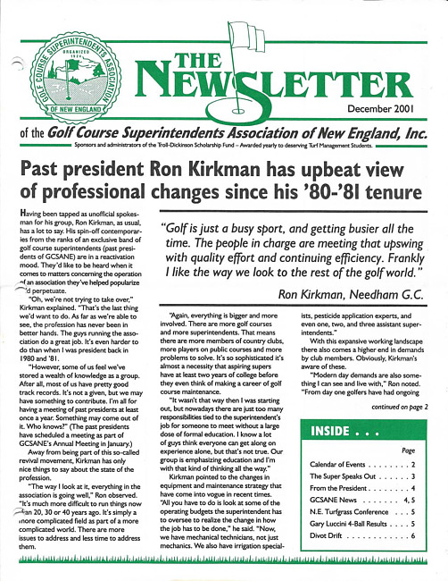 The newsletter of the Golf Course Superintendents Association of New England, Inc. (2001 December)