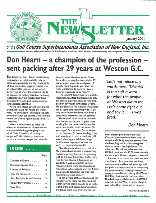 The newsletter of the Golf Course Superintendents Association of New England, Inc. (2001 January)