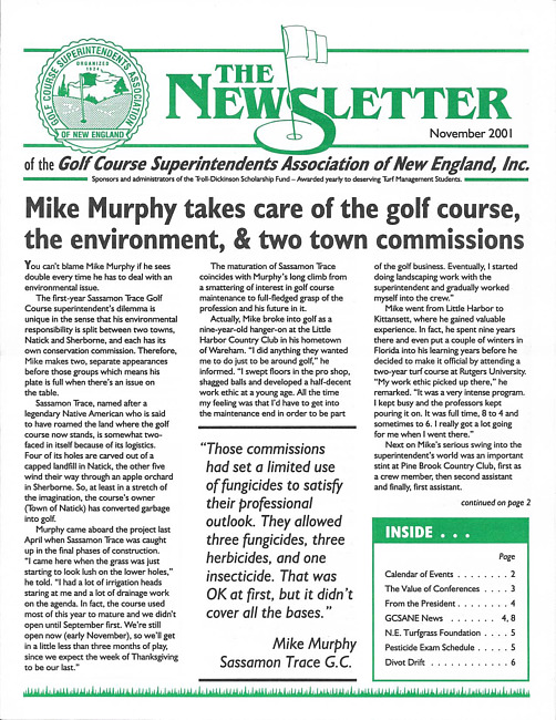 The newsletter of the Golf Course Superintendents Association of New England, Inc. (2001 November)