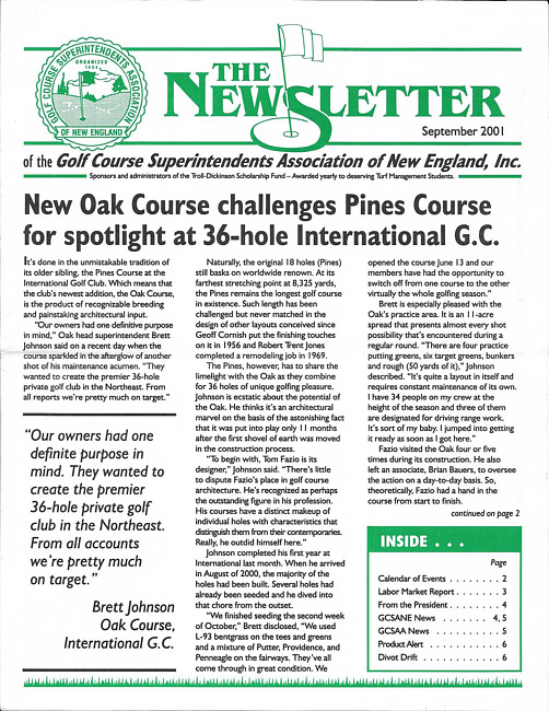 The newsletter of the Golf Course Superintendents Association of New England, Inc. (2001 September)