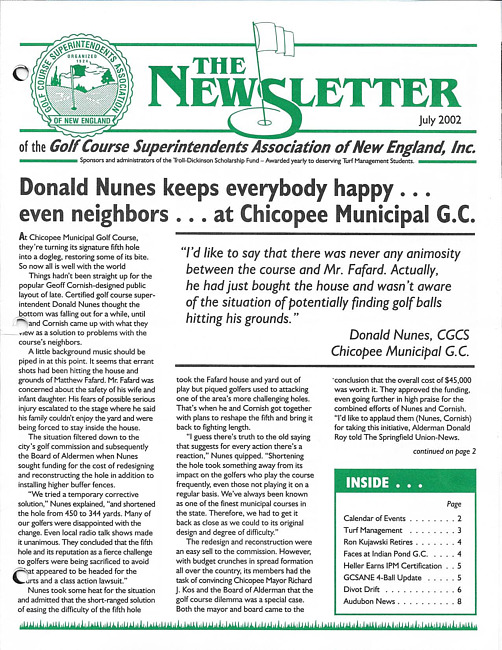 The newsletter of the Golf Course Superintendents Association of New England, Inc. (2002 July)