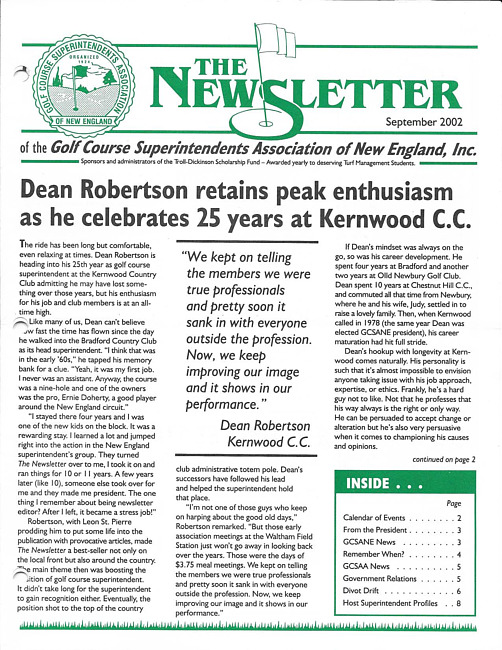 The newsletter of the Golf Course Superintendents Association of New England, Inc. (2002 September)