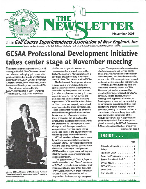 The newsletter of the Golf Course Superintendents Association of New England, Inc. (2003 November)