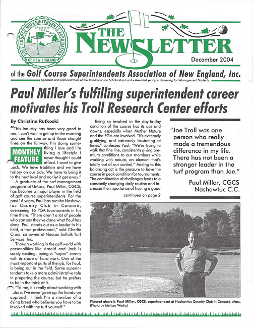 The newsletter of the Golf Course Superintendents Association of New England, Inc. (2004 December)