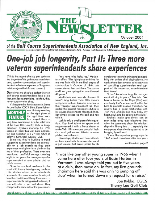 The newsletter of the Golf Course Superintendents Association of New England, Inc. (2004 October)