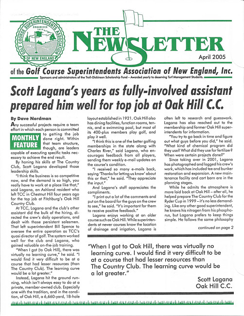 The newsletter of the Golf Course Superintendents Association of New England, Inc. (2005 April)