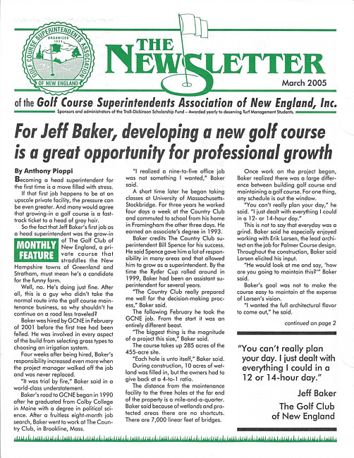 The newsletter of the Golf Course Superintendents Association of New England, Inc. (2005 March)