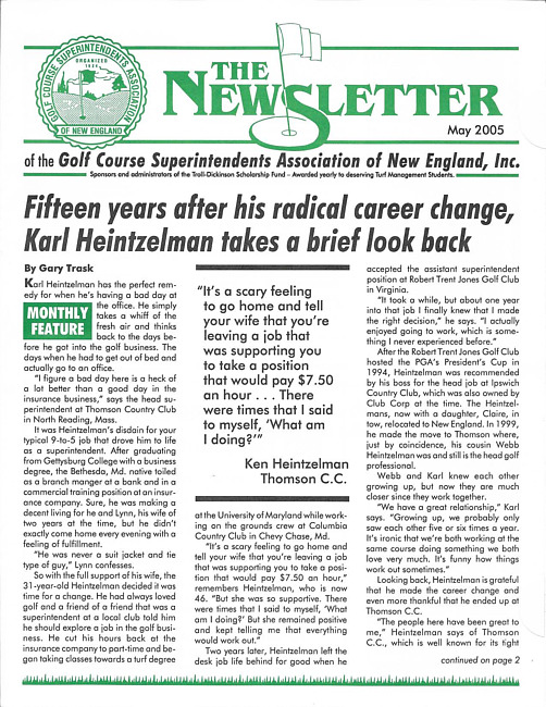 The newsletter of the Golf Course Superintendents Association of New England, Inc. (2005 May)