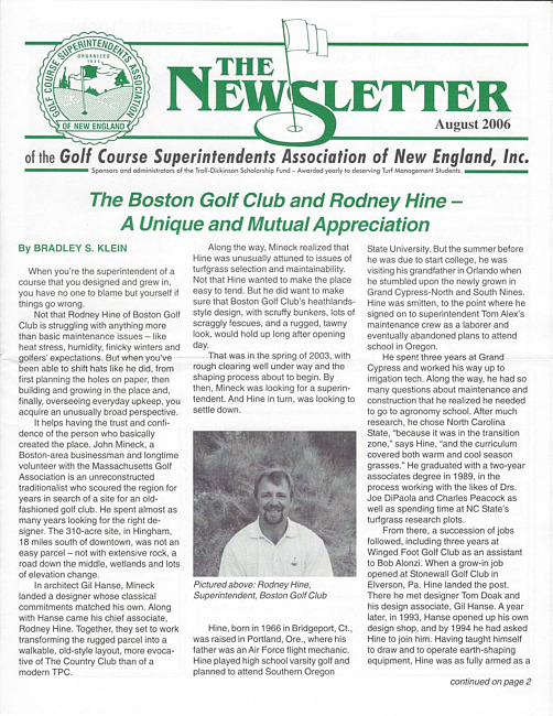 The newsletter of the Golf Course Superintendents Association of New England, Inc. (2006 August)