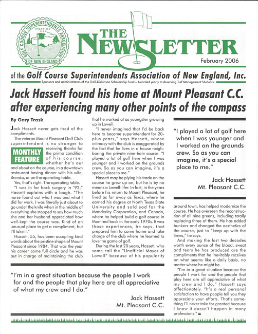 The newsletter of the Golf Course Superintendents Association of New England, Inc. (2006 February)