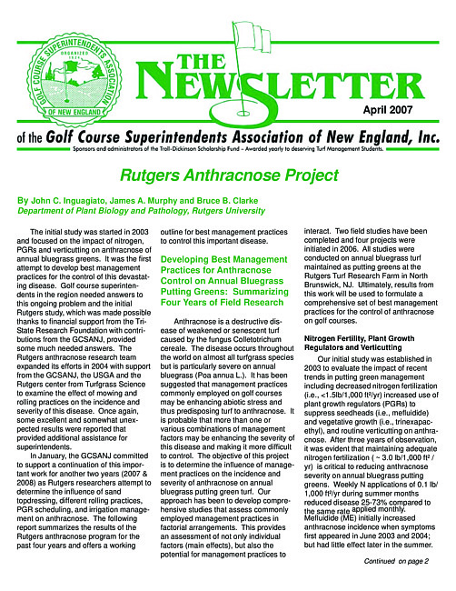 The newsletter of the Golf Course Superintendents Association of New England, Inc. (2007 April)