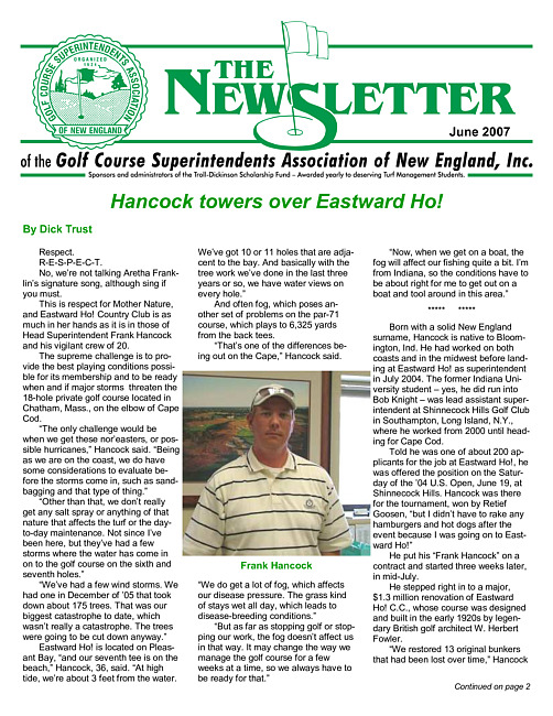 The newsletter of the Golf Course Superintendents Association of New England, Inc. (2007 June)