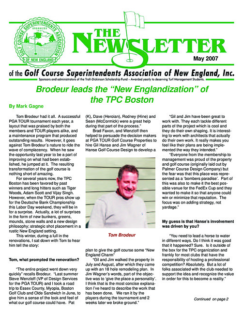The newsletter of the Golf Course Superintendents Association of New England, Inc. (2007 May)
