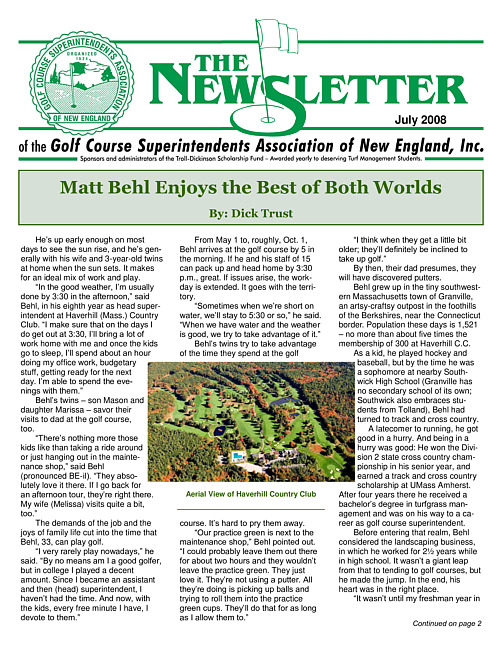 The newsletter of the Golf Course Superintendents Association of New England, Inc. (2008 July)